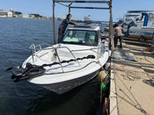 射水市K様 スズキシージョイ23の進水おめでとうございます。本日の船舶免許試験、合格をお祈りしています。合格前に船を購入されたK様でした!!(保管場所のJOYBASEまでは弊社スタッフが操船させていただきました!!)