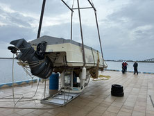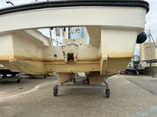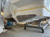 現在ハイドロインターセプターの取り付けに船底形状の改造を行っています。
